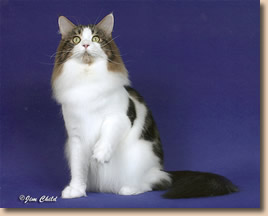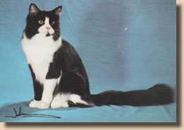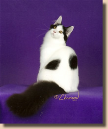CFA's 15th Best Cat In Championship GC, NW Trutails Aces High of 5800 Dreams Black and White, Male Breeder: Trudie-Dennis Allen Owner: K. Calhoun-T. Allen-D. Allen |