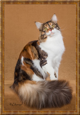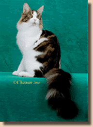 CFA's 25th Best Cat In Premiership GC, GP, NW Texas Belle Vanner Banner, DM Calico Van, Spay Breeder: Elizabeth Gaither Owner: Pat Idleman |