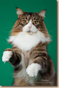 CFA's 16th Best Cat In Premiership GP, NW, Acadiacoons Franklin Lodge Brown Mac Tabby and White, Neuter Breeder: John Hitzeman Owner: John - Nancy Hitzeman |