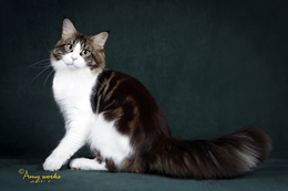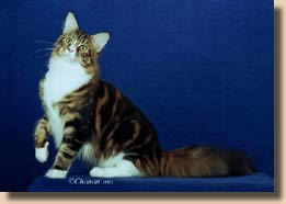 CFA's 23rd Best Cat In Championship GC,BW,NW Tabbeyrd Mr. Kite of Coonskin Brown Tabby and White, Male Breeder: Cheryl-John Kominos Owner: Judy Friedman-C-J. Kominos |